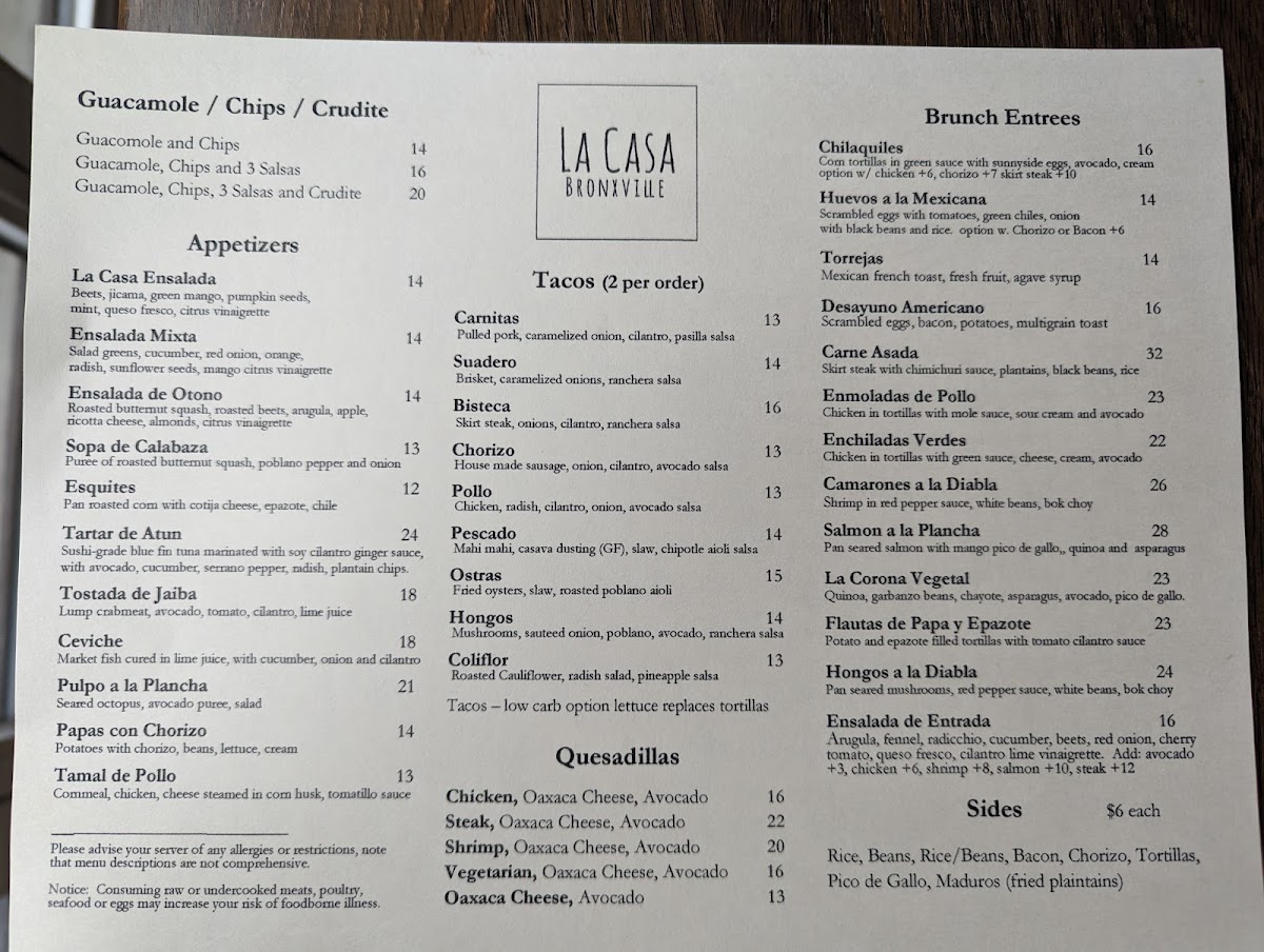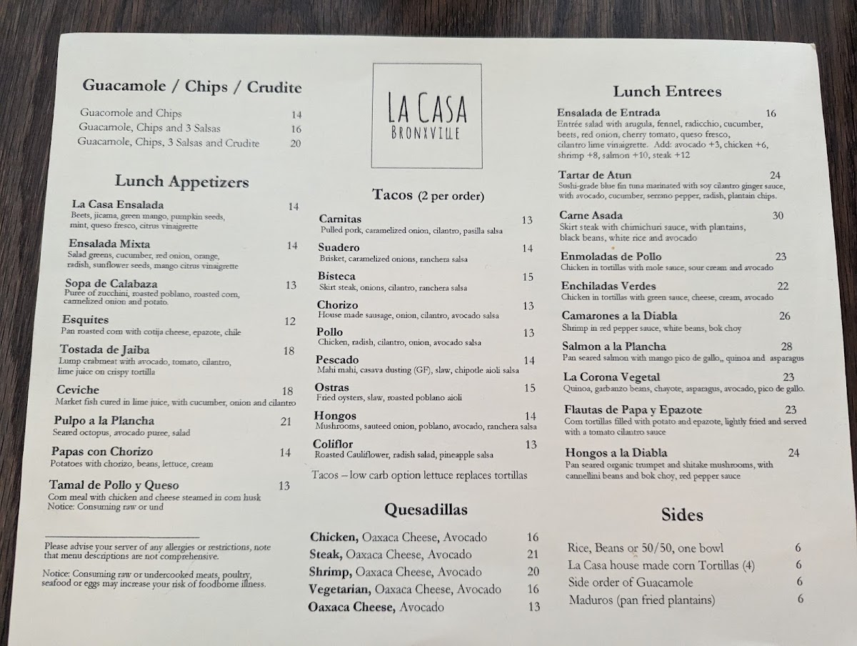 Flour tortilla, chicken, oaxaca cheese, avocado, grilled and served with mexican sour cream on the side